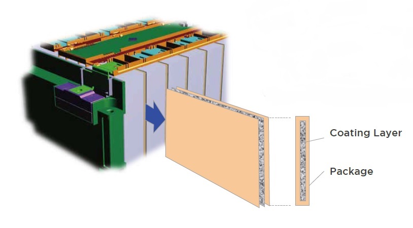This cover contains both flame retardant and fire resistant materials that can withstand 10 minutes of flames at 1,000℃. By using this cover on batteries in EVs and other vehicles, it contributes to the safety of passengers in case of accident or fire.