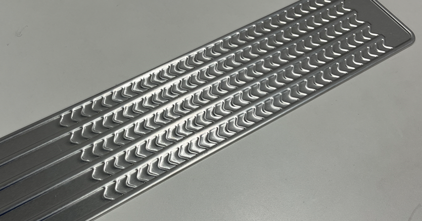This is a battery cooling product that efficiently cools the underside of batteries (i.e., the upper side of the flow path) and equalizes battery temperature. A key feature is the protrusions in the parallel flow paths, which generate vortices that agitate the fluid boundary layer, thereby improving cooling performance. By optimally placing the protrusions, cooling efficiency is enhanced in specific areas, thereby reducing temperature variations within the battery and contributing to extended battery life.