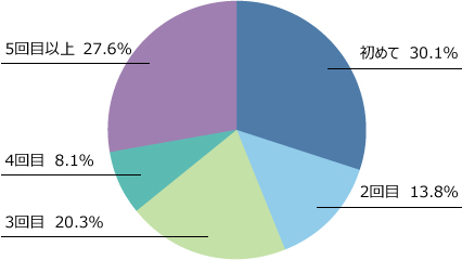 ご回答者のうち、「初めて」のご出席が30%、次いで「5回目以上」のご出席が28%となりました。