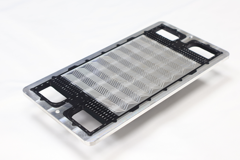 バッテリーを冷却する製品で、バッテリーの底面(流路の上側)を効率良く冷却でき、さらにバッテリーの温度均一化を図ることができます。並列流路内に突起を有していることが特長で、この突起により渦を発生させ、流体境界層を撹拌させることで、効率的な冷却性能を発揮します。また、突起を最適な箇所に配置することで、任意の箇所の冷却効率を向上させ、バッテリーの部位別温度差を縮小することにより、バッテリー寿命の延長に貢献します。